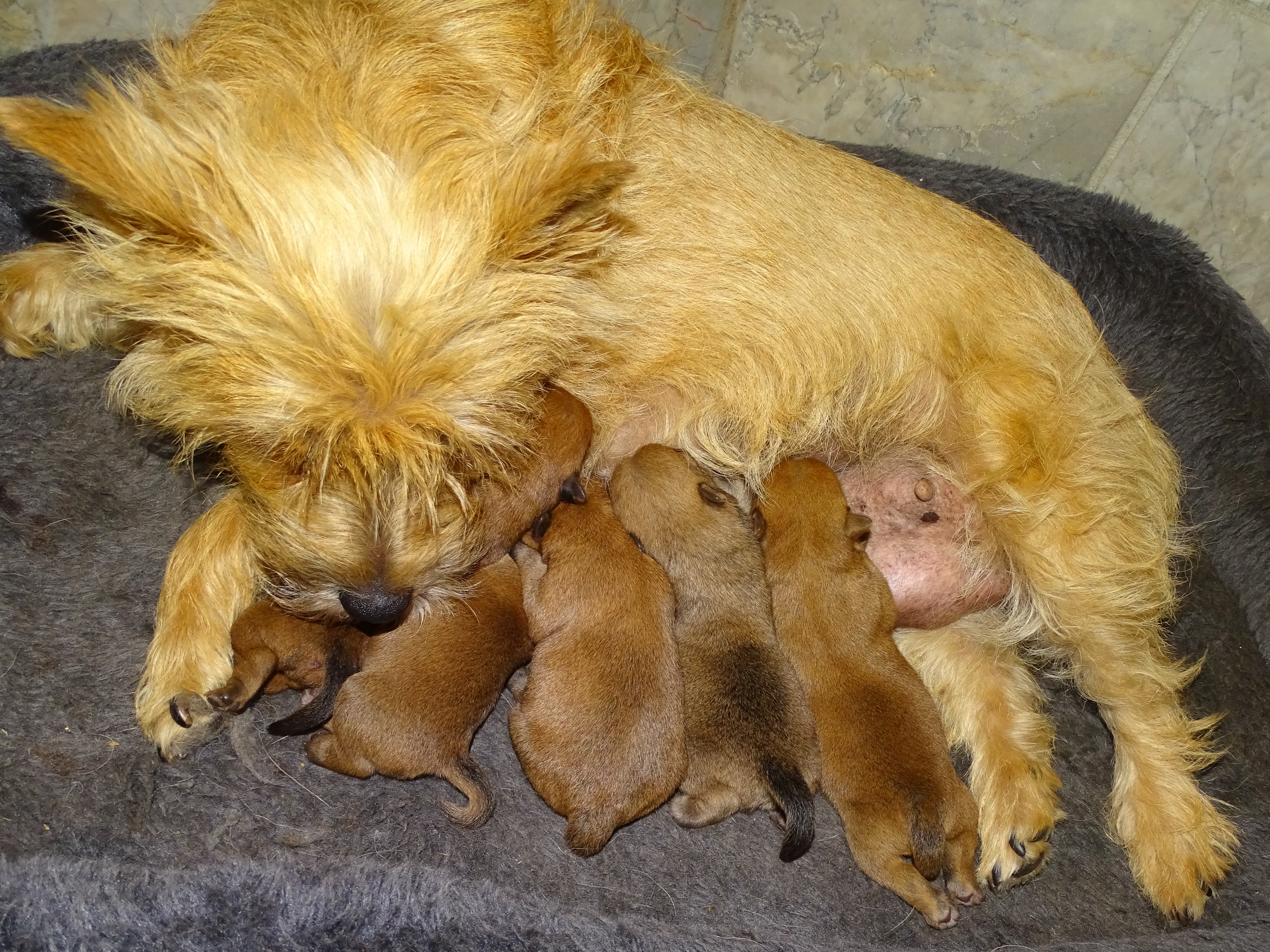 The mom may begin digging in her whelping box. This is normal nesting behavior.