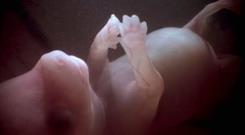 The eyes have lids now and will remain closed until approximately 10 days after birth.