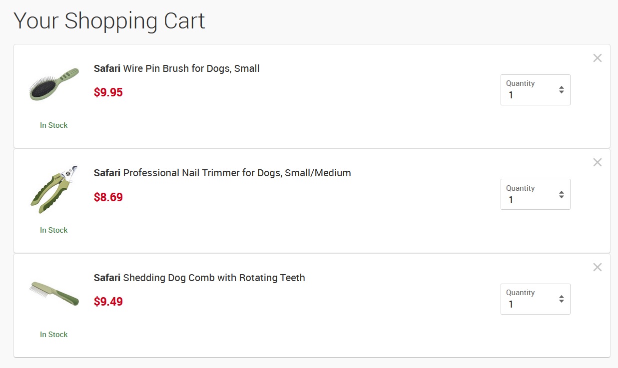 It is a common misconception that grooming a Cairn Terrier requires a great deal of time, effort, and skill. This is true for Show Grooming where the ideal is to produce a perfectly sculptured, faultless example of the breed. The amount of time, effort, and skill required to meet the basic goals of health, hygiene, and appearance, however, are far more modest. As you see you from my shopping cart below, you can purchase all the tools you will need to complete basic grooming for your Cairn Terrier for around $30